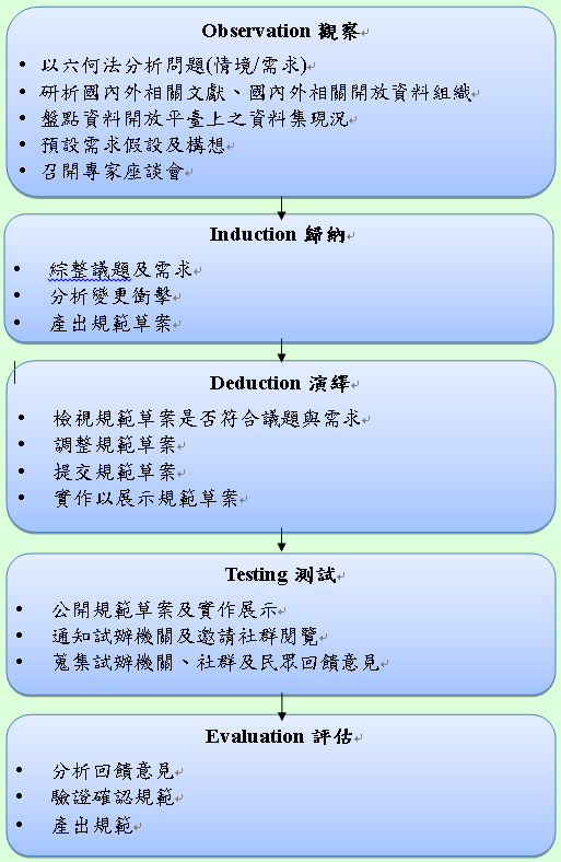 為能廣邀各方建議,並考量未來資料交換的應用層面,亦會舉辦社群開放座談會,透過同行評審(peer review),希冀能夠讓評鑑標準更臻完善。
